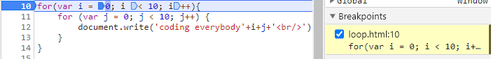 document.write('coding everybody'+i+'<br/>');