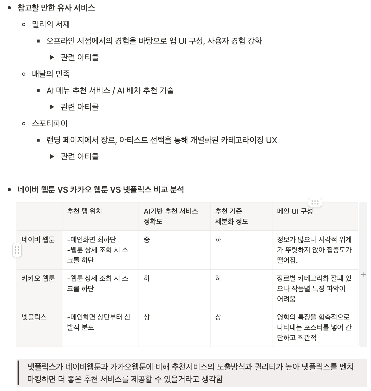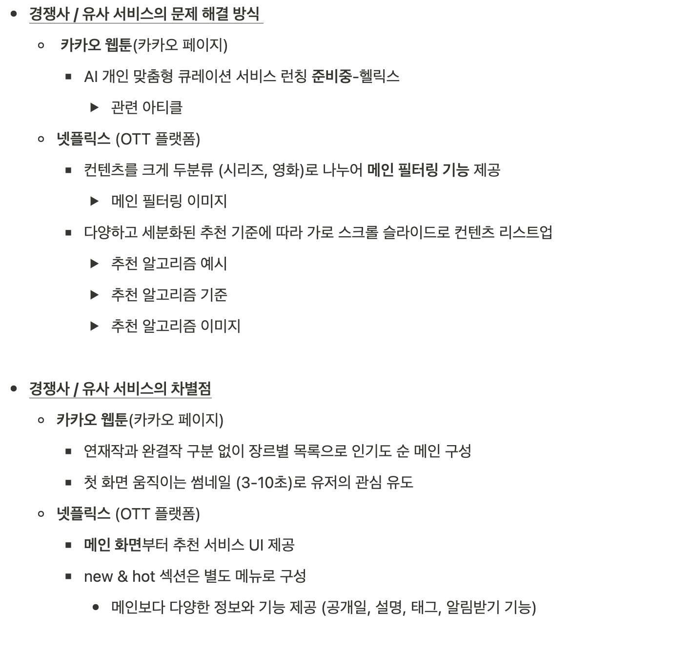 - 다양한 프로덕트의 분석을 통한 문제해결 포인트 인사이트 구조화