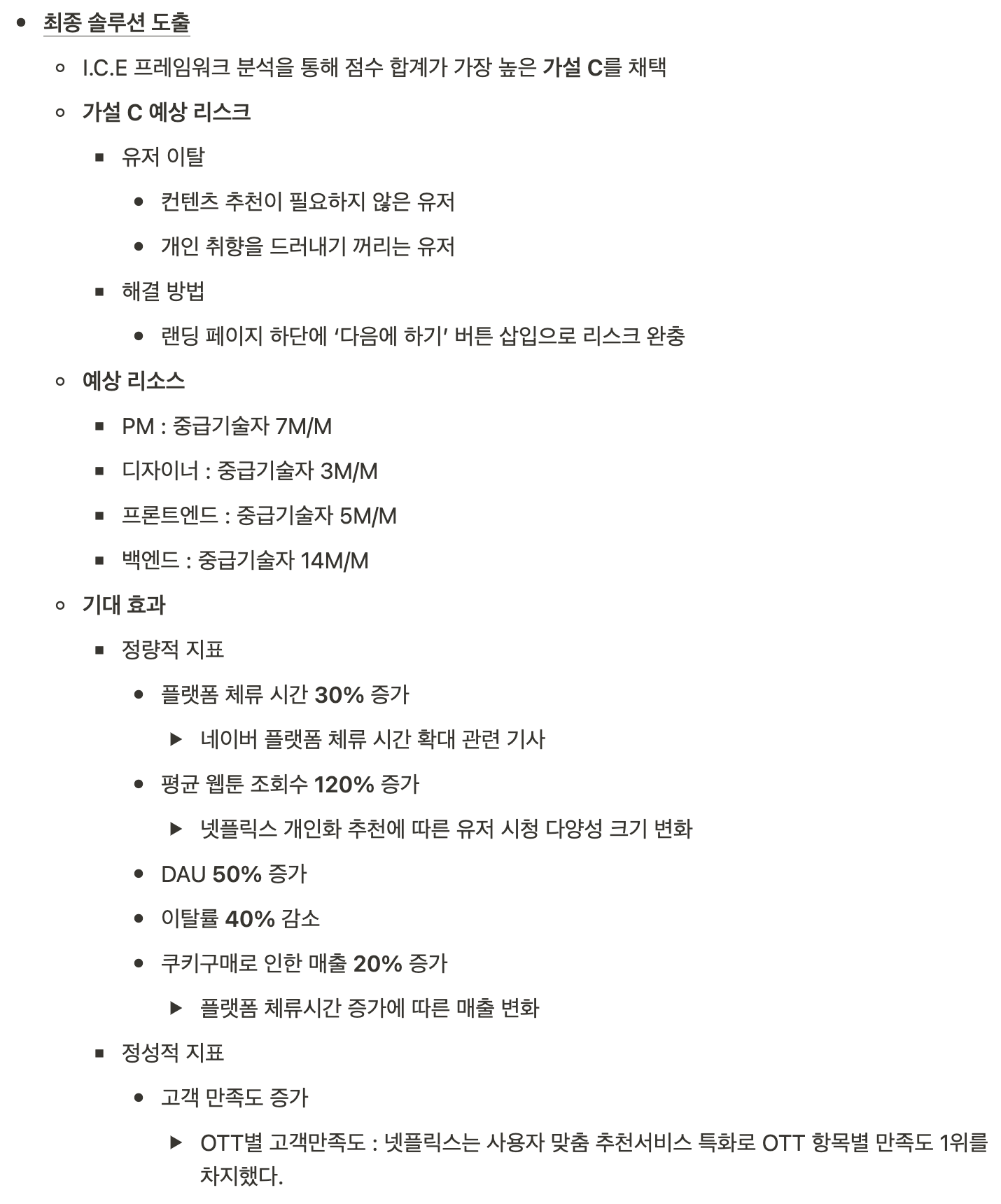 또한 기대효과는 %로 구체적으로 서술하는게 좋다는 피드백을 받았다.