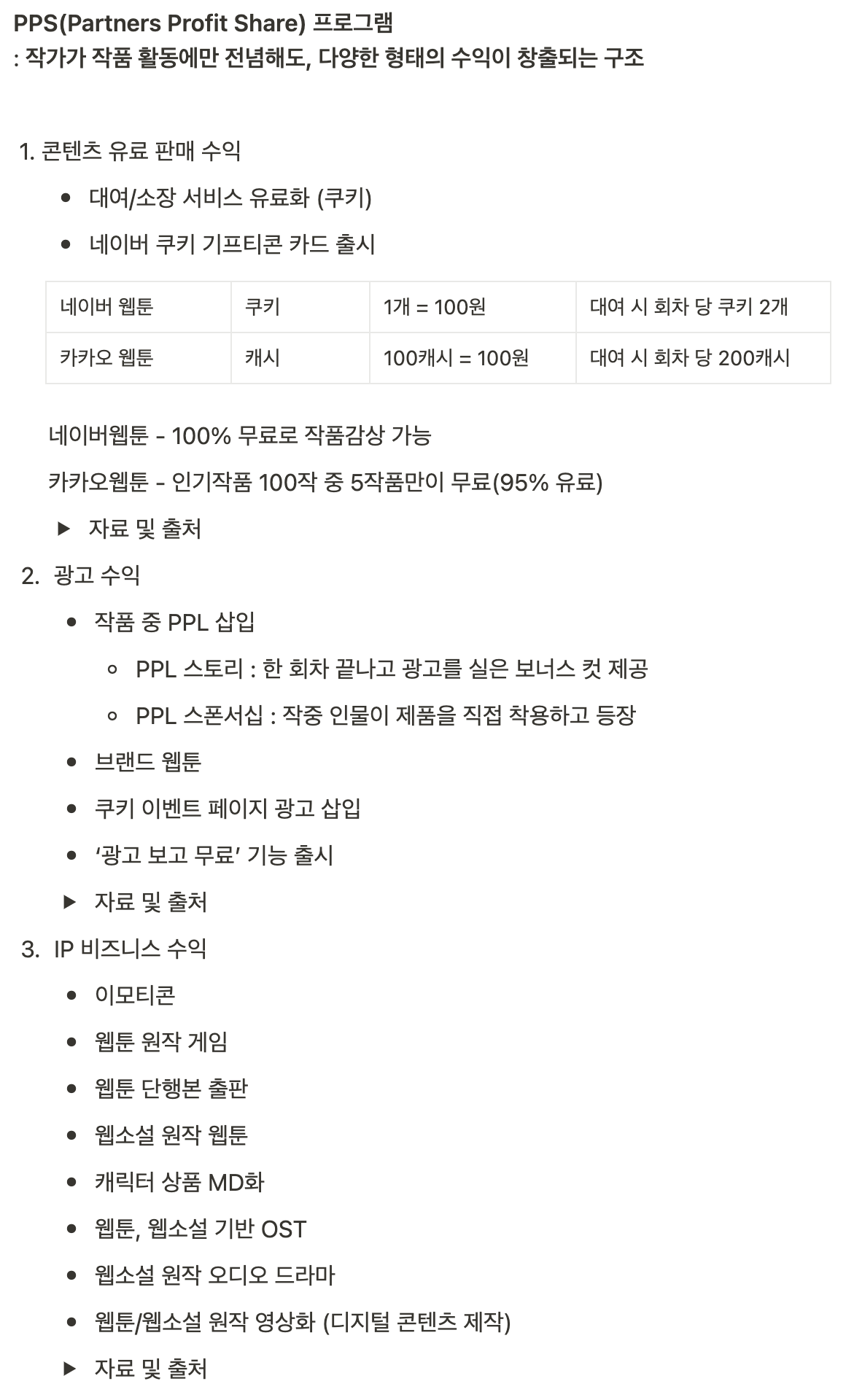 PPS 프로그램은 네이버 웹툰이 제공하는 작가 수입 창출 프로그램인데 살펴보니 네이버 웹툰이 추구하는 수익 모델과 크게 다르지 않을 것 같아 이것을 토대로 비지니스 모델을 분석하였다.