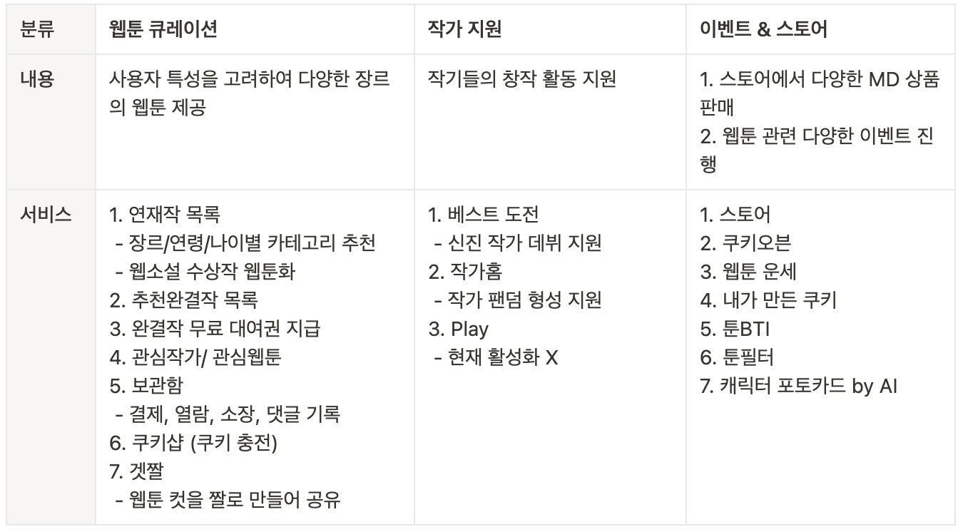 비지니스 모델 분석 할때는 경쟁사의 BM도 추가해주면 좋은데, 시간 관계상 카카오 웹툰의 유료 과금 모델 정도만 간단하게 분석해서 추가하였다.