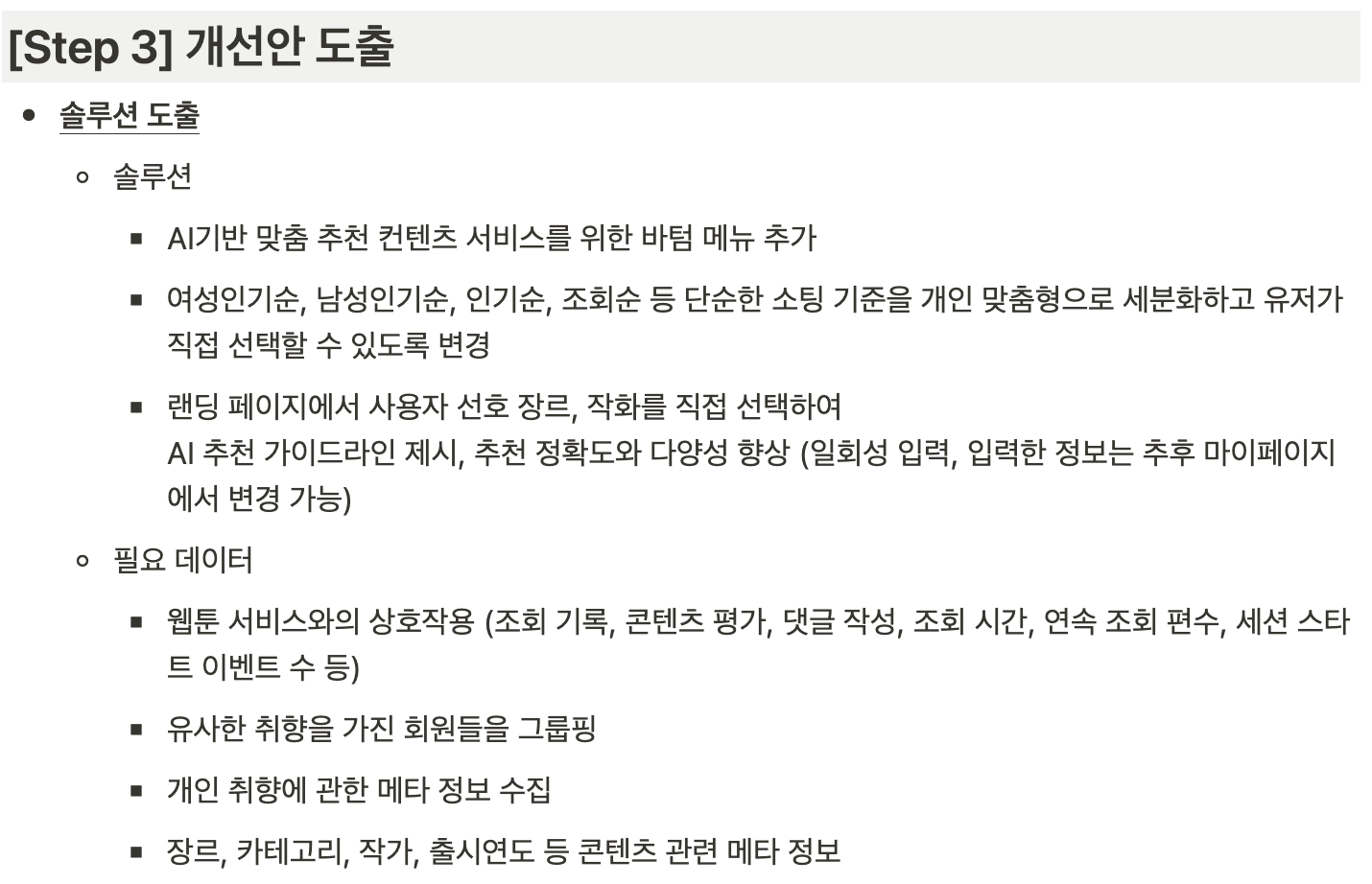 - 역기획의 마지막, 솔루션의 귀결이 구체적이지 않았던 것