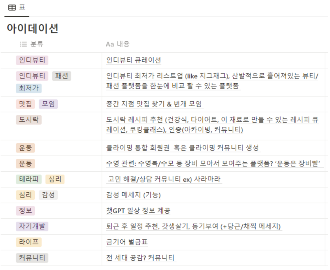 커뮤니티 같이 사용자 참여가 필요한 서비스의 경우 단기간에 모객이 어려워 제외되었고,