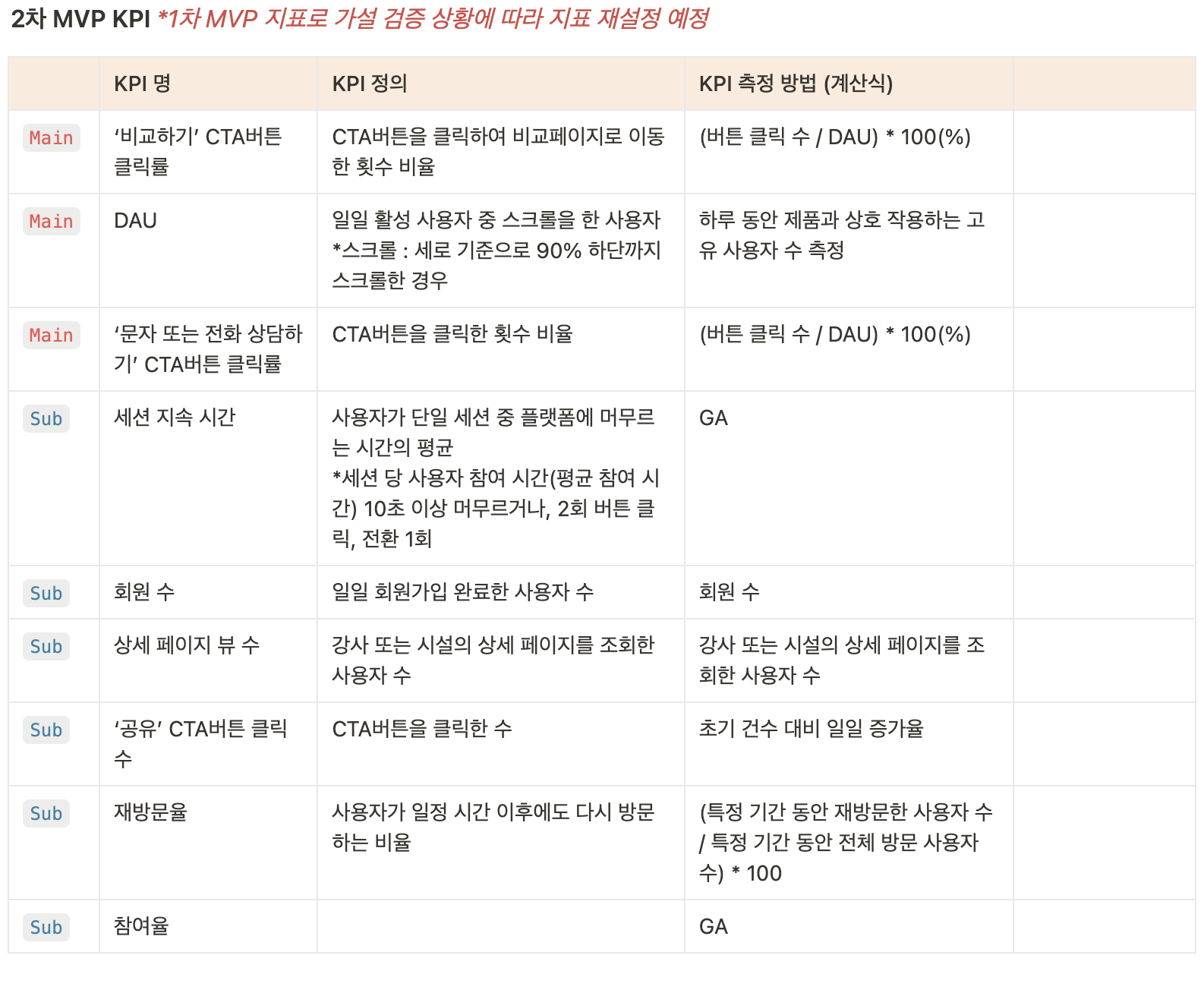그리고 추후 2차 MVP의 첫 퍼널에 레슨 비교하기 기능을 추가하여 저희의 차별화 포인트를 전면에 배치할 예정입니다.