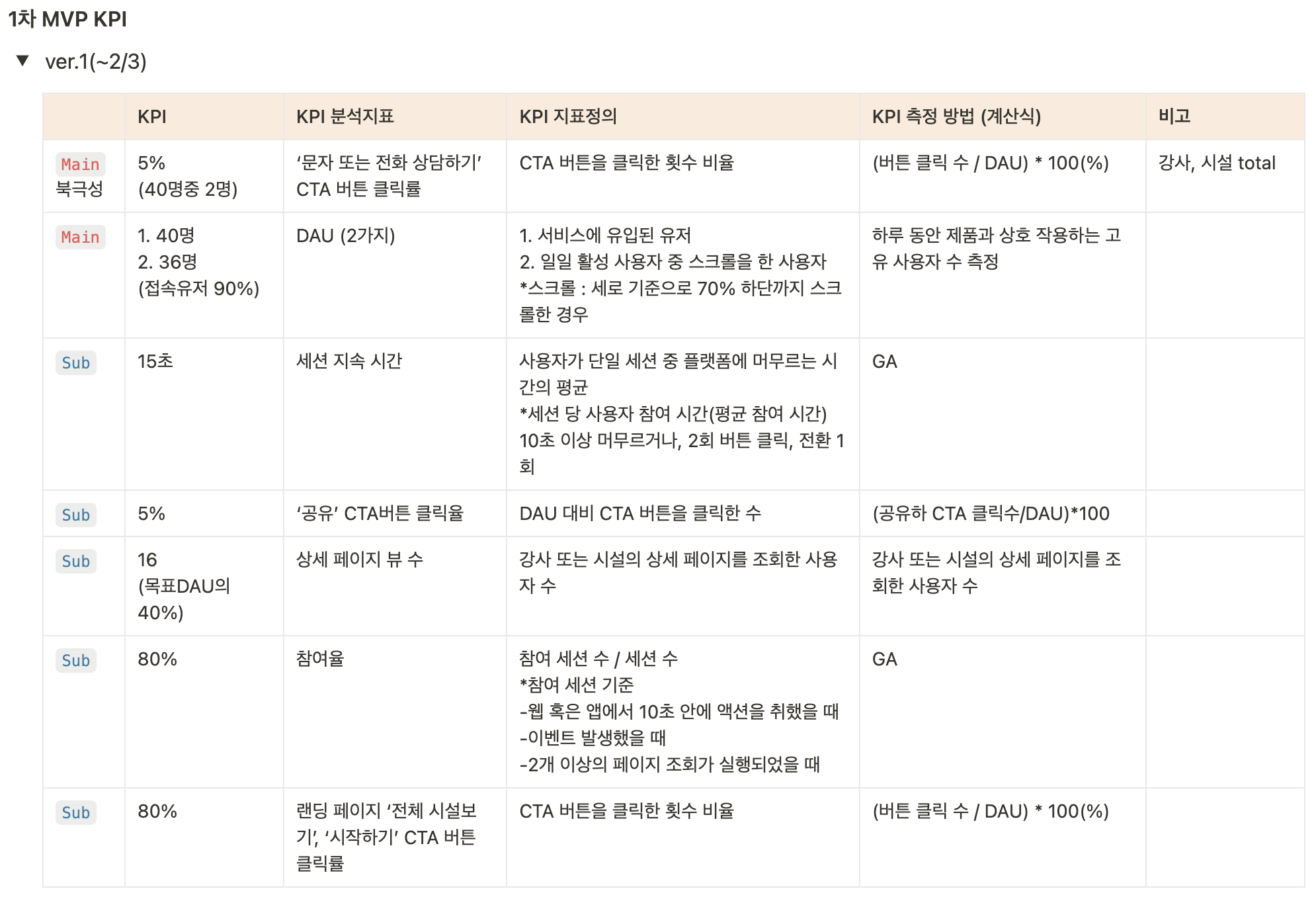이렇게 정해진 1차 MVP 목표를 가지고 본격적으로 개발 범위를 구체화하기 시작했습니다.
