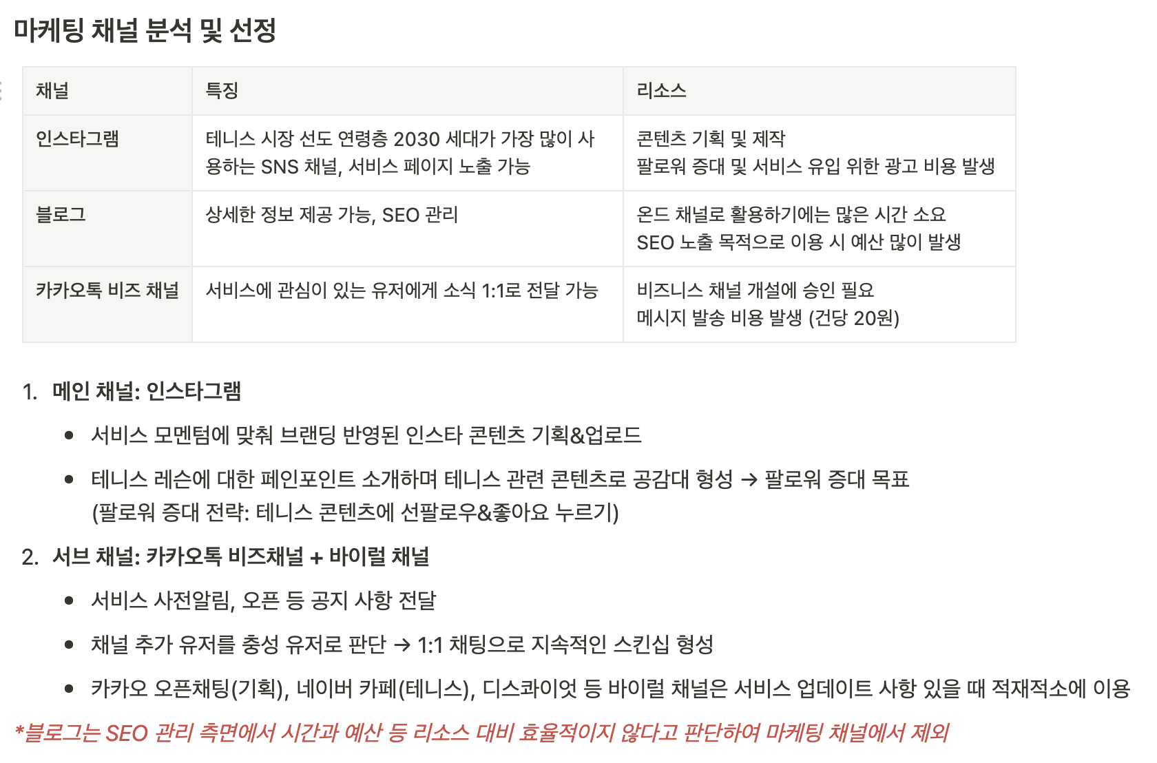 저희 팀은 모객 및 출시 마케팅 주요 채널로 인스타그램을 선정했습니다.