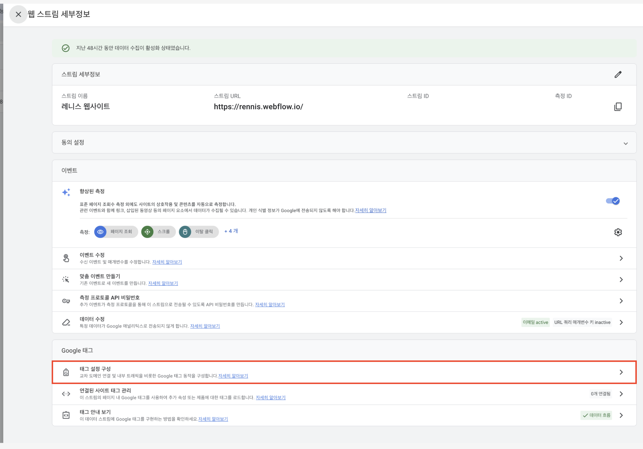 내부 IP 설정은 GA 메뉴 중 '관리 > 데이터 스트림 > 태그 설정 구성' 에서 할 수 있습니다.