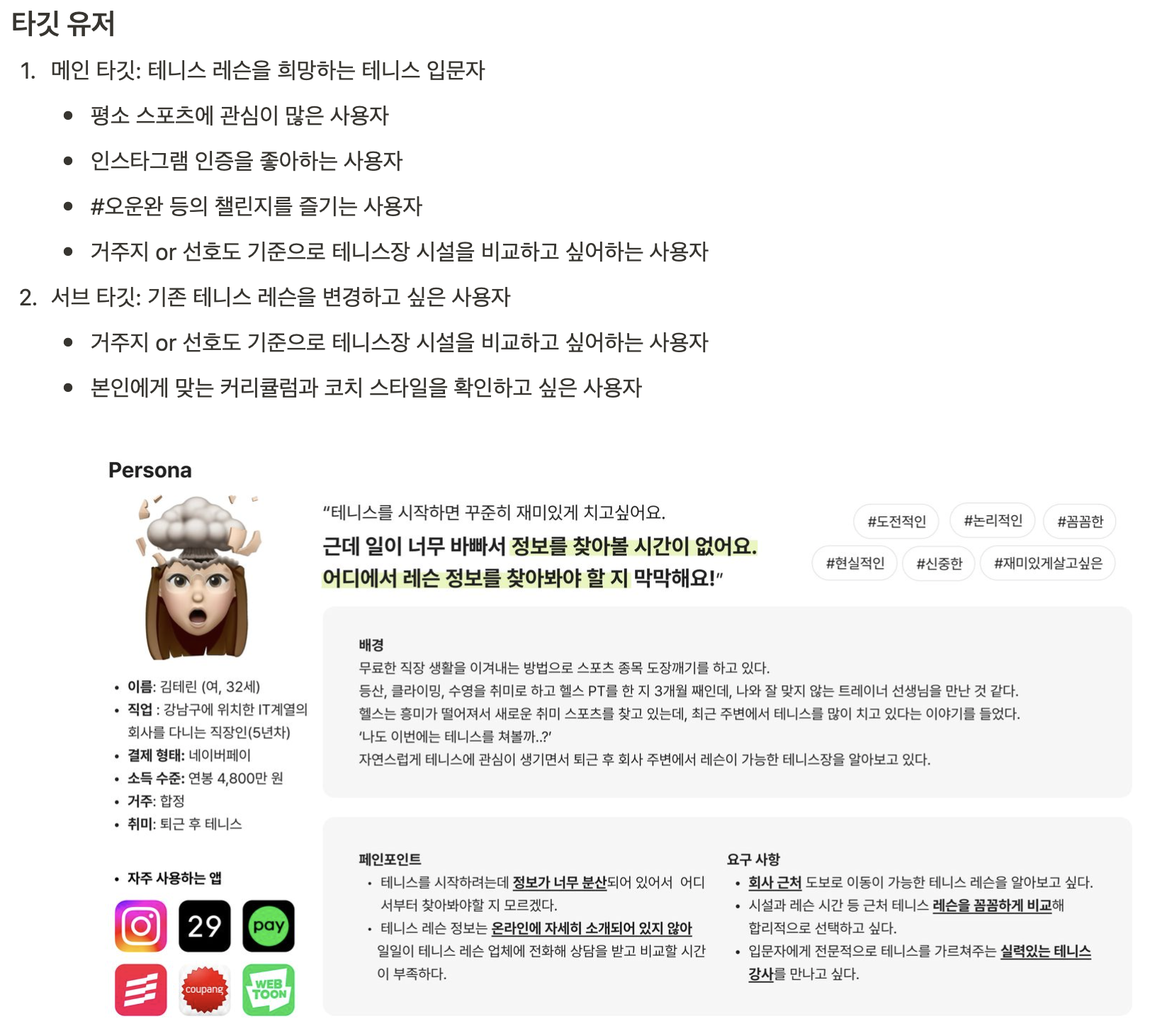 저희 서비스가 테니스 시설별, 코치별 레슨 정보를 보여주는 것이다보니 테니스 레슨에 대한 정보를 수집해야 했습니다.