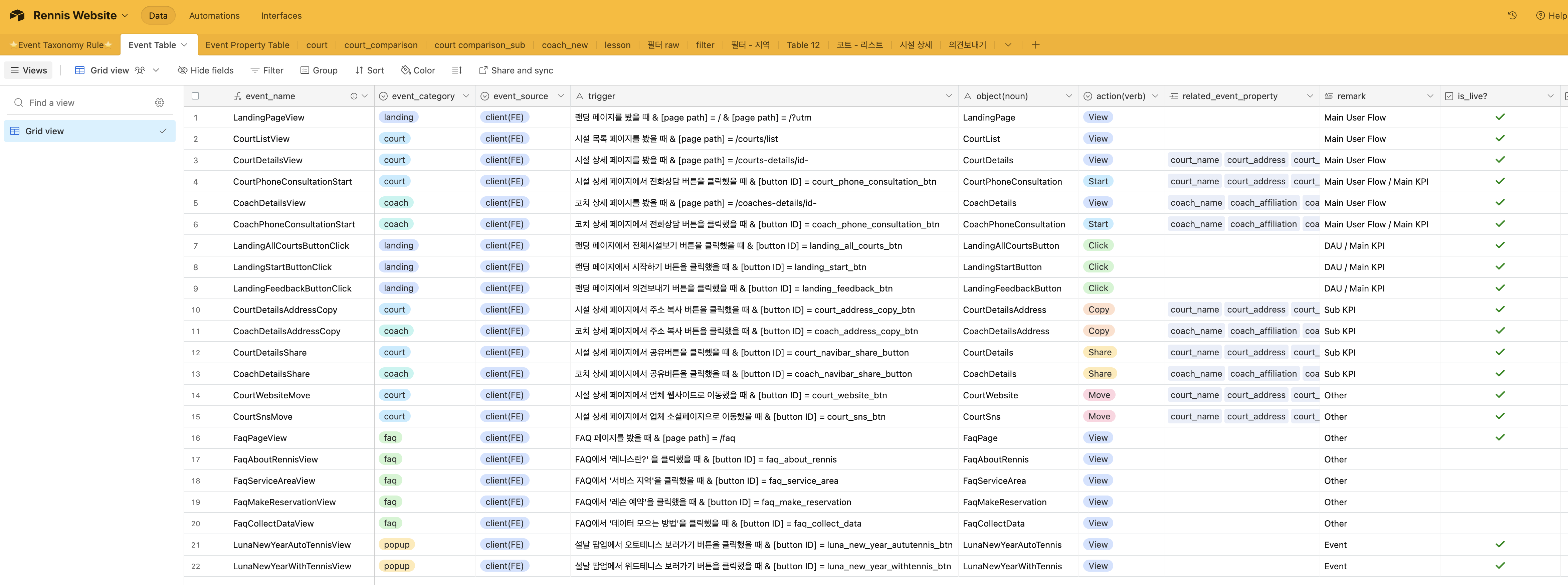다른 분들이 QA를 맡아주실 동안 저는 레니스 사이트의 이벤트 텍소노미를 설계하고 GA & GTM을 셋팅했습니다.
