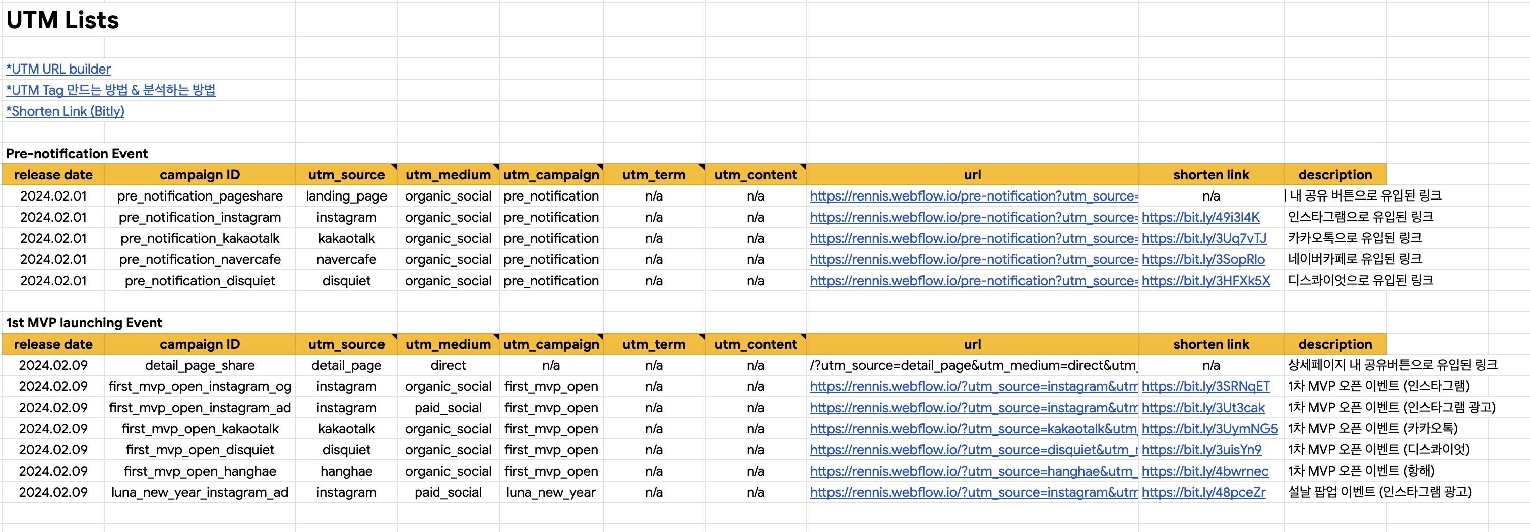 효율적인 관리를 위해 UTM 트레킹 시트를 만들었습니다.